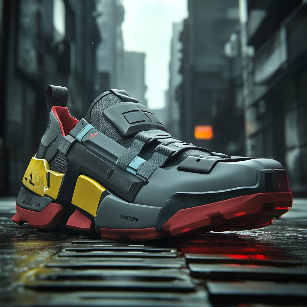 The TACTICAL TERRAIN is designed for individuals who demand both performance and style. These sneakers feature a bold, futuristic design with a striking color palette of black, yellow, red, and blue accents, blending innovation and rugged functionality seamlessly.