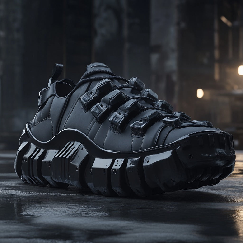 The Tank Trail embodies ruggedness and sophistication, designed for the toughest adventures while ensuring all-day comfort. With their sleek black matte finish and heavy-duty construction, these sneakers are perfect for urban explorers and outdoor enthusiasts. The reinforced sole provides exceptional grip and stability, while the robust upper ensures durability against wear and tear.
