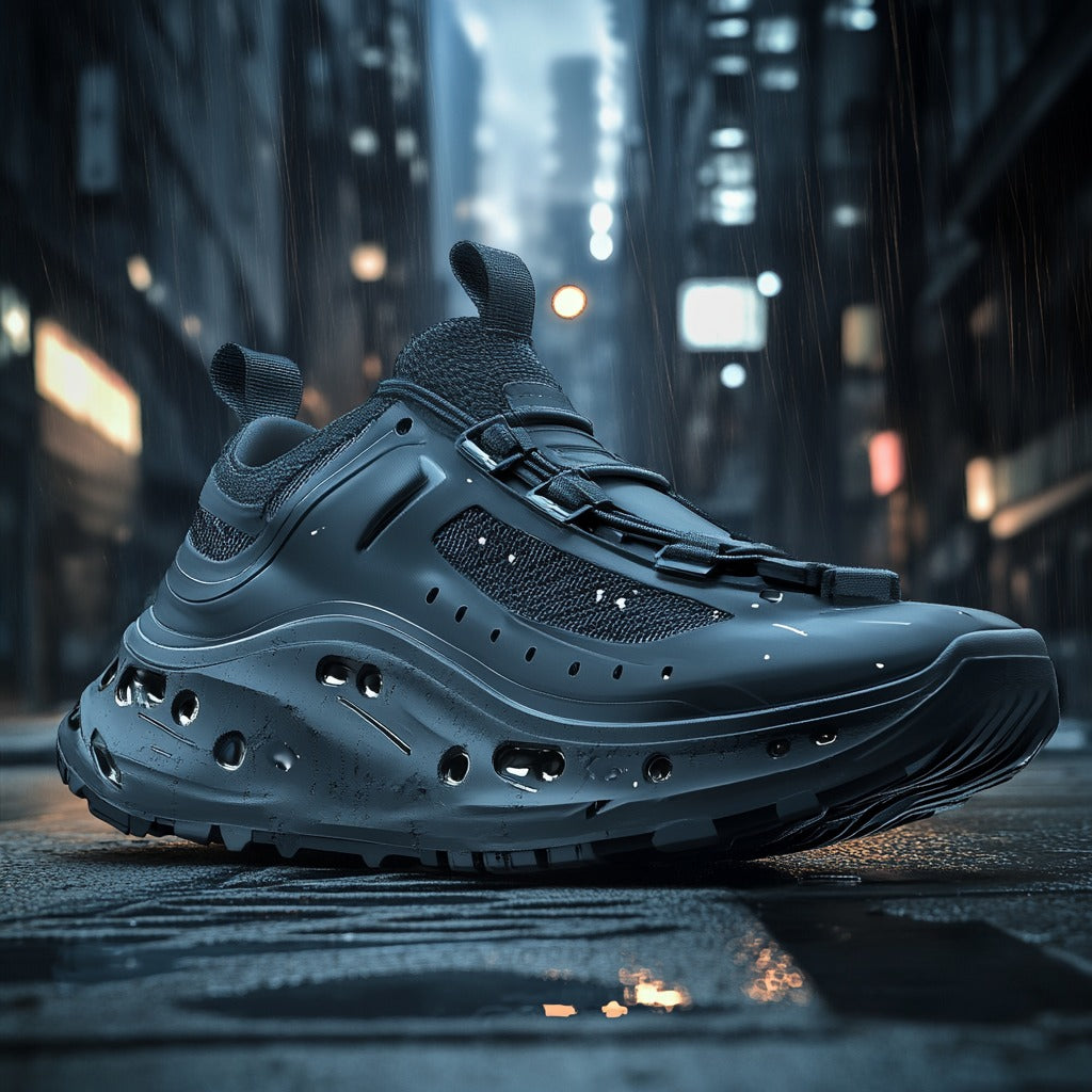 The IMPACT FORCE redefine durability and style with their futuristic, all-black design. Featuring a perforated midsole for enhanced flexibility and shock absorption, these sneakers are built to handle both urban streets and rugged terrains with ease.