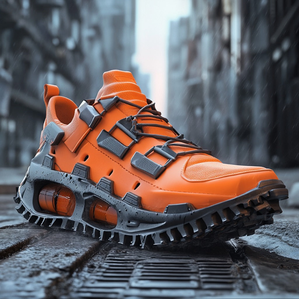 The PINNACLE redefine boldness with their vibrant orange design and rugged construction. Featuring a unique multi-layered sole with integrated cushioning for maximum support, these sneakers are built to tackle any terrain while making a striking style statement.